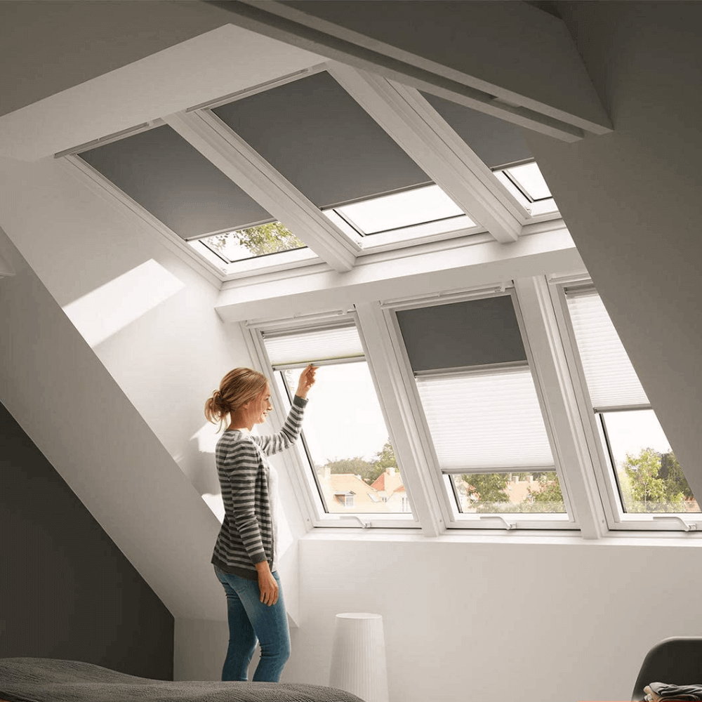 Découvrez notre large gamme de stores et volets pour fenêtres VELUX, incluant les stores multifonctionnels, occultants, plissés, rideaux, vénitiens, pare-soleil et stores duo. Chaque produit est conçu pour optimiser lumière, confort et intimité tout en s’intégrant parfaitement à votre intérieur. Profitez de solutions pratiques et esthétiques, avec motorisation possible pour une expérience sur mesure et moderne.